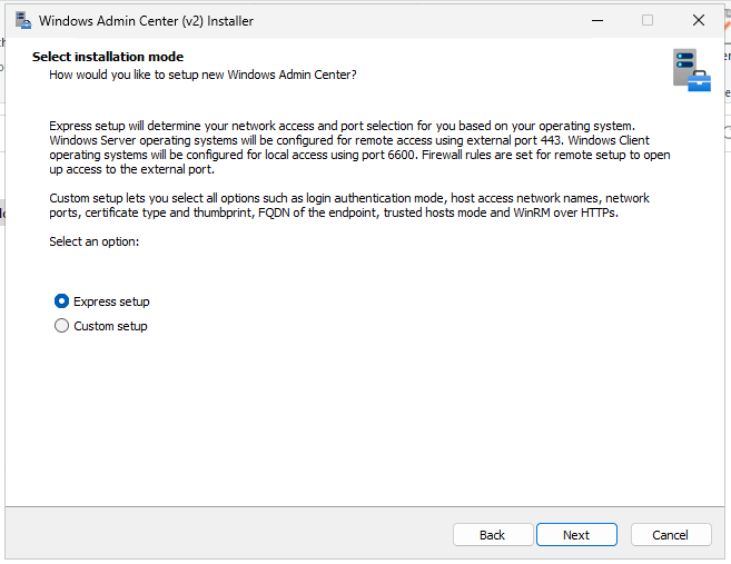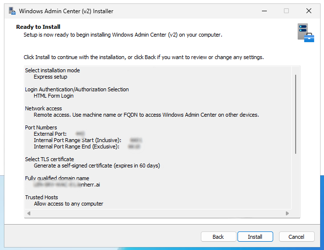 Note: You cannot install the WAC on a domain controller!