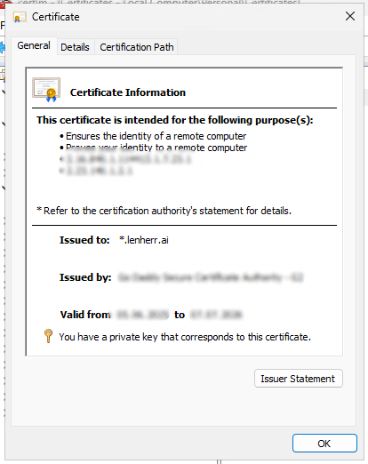 We now have successfully configured a new certificate for our Windows Admin Center instance.