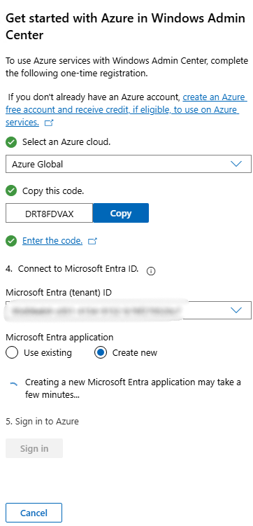 And we already got the connection established between our on-prem WAC instance and our Azure environment!