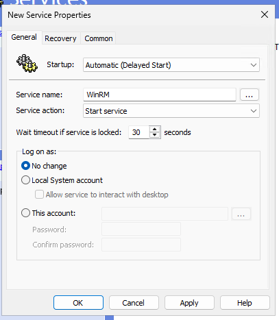 - Service name -> seach with the three “…” for WinRM